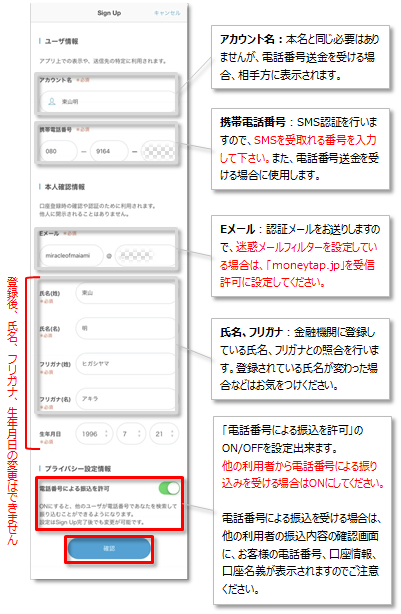 Money Tapのご利用を開始していただくためのサインアップについて